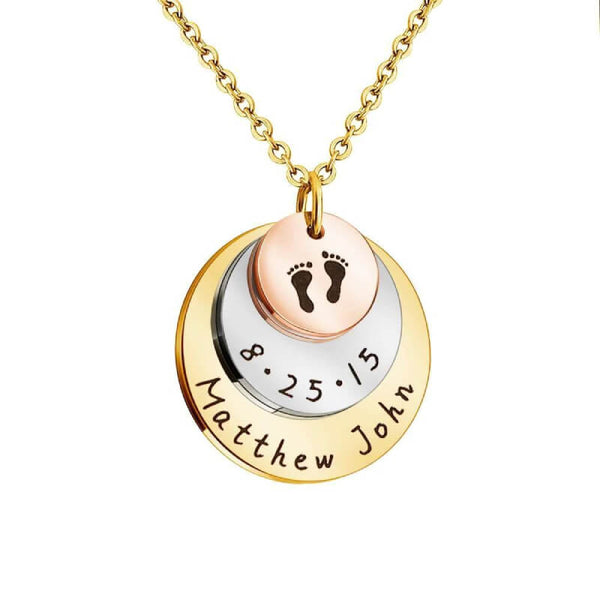Looking for a unique gift that will show your mom just how much you love her? Look no further than our Personalized Baby Footprint Necklace With Name And Date. This gorgeous necklace features a dainty sterling silver chain with a beautiful pendant engraved with your baby's footprints and name.