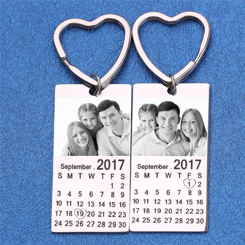Remember a beautiful memory by carrying your keys on the unique personalized photo calendar keychain. Engrave your photo and a particular date with this personalized photo calendar keychain.